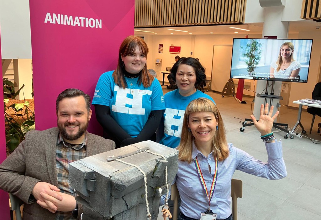 With Melvyn Ternan (left) and student ambassadors during an open day Oct 2023, Sheffield Hallam University.