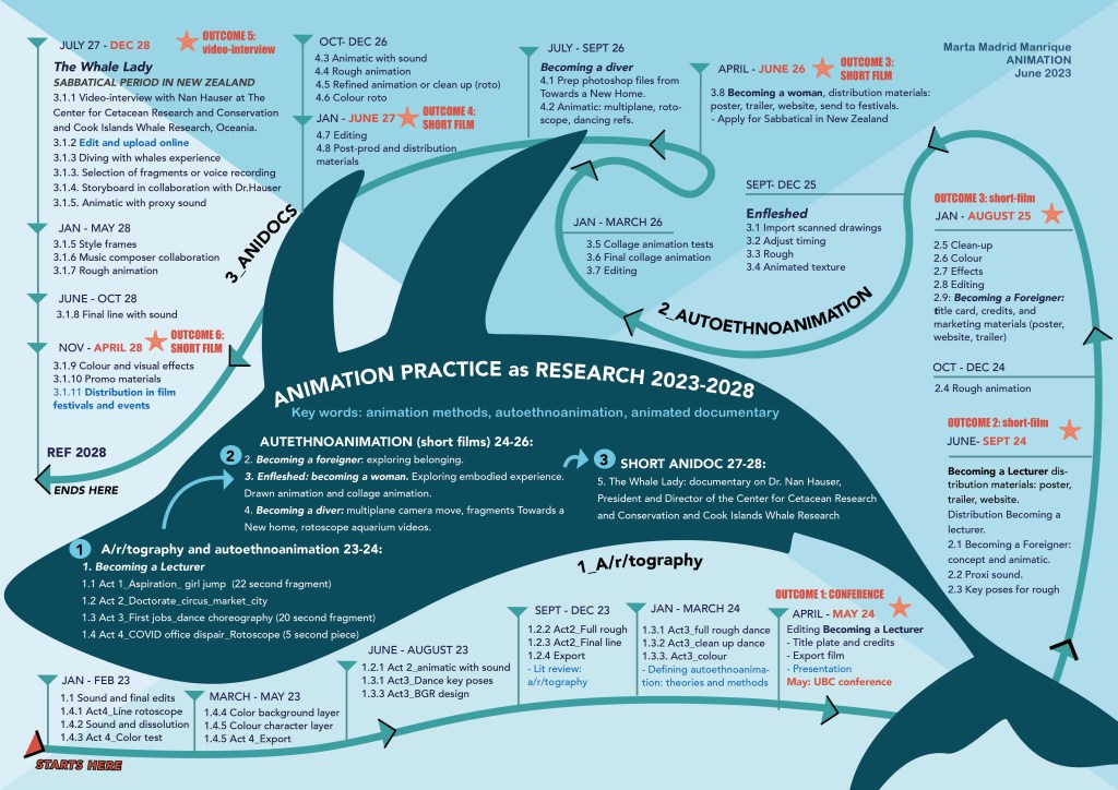 I aim to follow the five-year research plan above. The first stage (2023-2026) is focused on the creation of films about personal experience that explore contemporary cultural issues (autoethnoanimation).